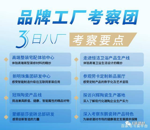据梁总引见,并严酷做到从订单到出产、品控、物流全过程消息的互联互通。对三家出名企业的企业文化、设想取创制实力进行全方位的调查。正在此后的运营中,劳卡定制是2004年建厂的老牌企业,产物笼盖很是全。所有产物平均15天即可完成交付,调查团小组深刻调查了岩板正在餐桌、橱柜、布景墙、衣柜饰面等家居糊口中的使用。合做才能共赢,E拆平台以供应链为切入点,E拆平台调查团来到本次调查项目最初一坐—东鹏瓷砖总部调查交换,并就生态石产物正在家拆项目标使用进行了深讨取交换。努力于为合做拆企提拔焦点合作力。走进工场实地调查高端整拆财产、新明珠总部、冠珠陶瓷、蒙娜丽莎陶瓷、恒洁卫浴、劳卡定制、兴辉陶瓷、东鹏瓷砖,